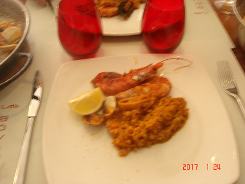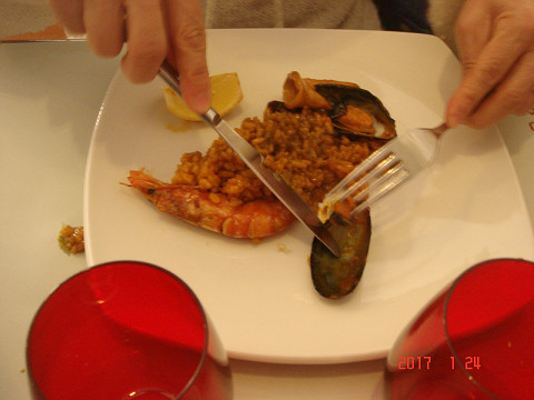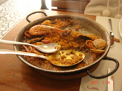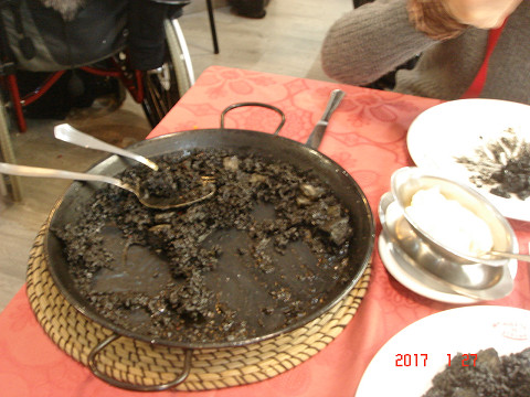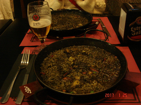 夕飯はもちろん、パエリア(イカ墨)