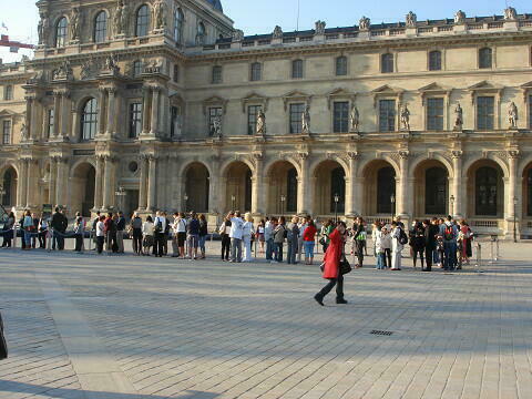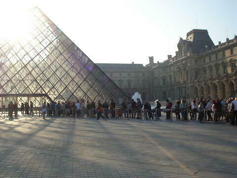 20100903ルーブル美術館ピラミッド入り口に並ぶ人
