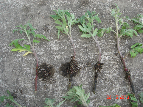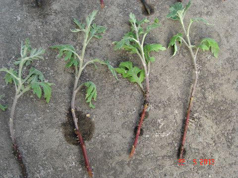 挿し芽に発根の形成が見られる。