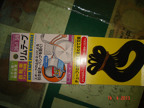 100円ショップで自転車用リムバンド(商品名;リムテープ)購入。